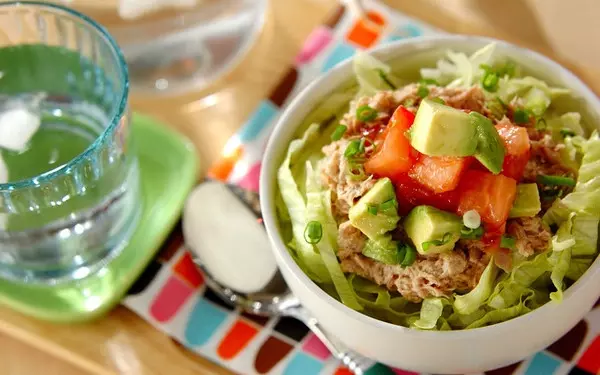 アボカドとツナでおしゃれな洋風丼を作ります。アボカドは変色しやすいので、レモン汁を使ったドレッシングで和えておくのがコツです。緑と赤のコントラストが映え、目でも楽しめますよ。火を使わずに作れるので、暑い日やアウトドアでの調理にも重宝しそうですね。